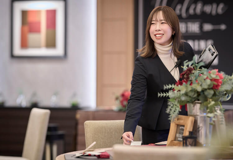 「一人で動いていたときとは違うベクトルの責任と権限を得て、仕事のやりがいも増しました。着任した拠点は、神戸の外資系ホテル内にある会場。ホテルに合わせたブランドのつくりこみや内装、コンテンツのリニューアルとメンバーの入れ替えが重なり、いきなり自分の裁量で大きな判断をしなければいけない場面がたくさんあったんです。でも、自分の考えを持ったうえでメンバーやお客さまの意見をしっかり聞き、判断しながら進めていけば、過剰に恐れることはありません」