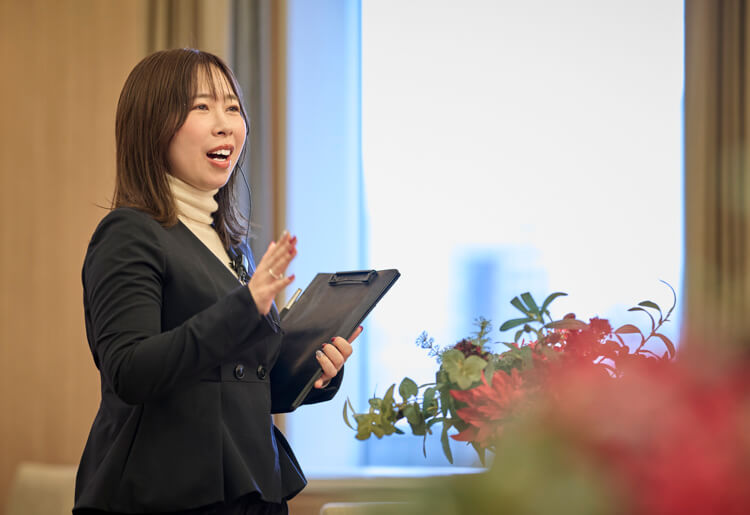 「自分自身もプランナーとしてエントリーしたことがあるけれど、予選落ち。決勝の雰囲気を味わってみたくて、運営側に立候補したんです。イベントづくりは日々の結婚式で鍛えられているつもりでしたが、会場の雰囲気や部門紹介コンテンツのつくりこみ、自由度がまったく違う動画制作など、初めての作業もたくさん。やはり、新しい仕事によってしか得られない視点やスキルがあるし、その積み重ねが日常の業務に活きると感じました」